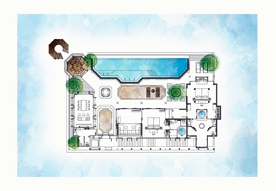 The private pool is a top feature of this suite. This spacious suite comes with 1 living room, 1 separate bedroom and 1 bathroom with a bath and free toiletries. The air-conditioned suite features a flat-screen TV with streaming services, a mini-bar, a tea and coffee maker, a seating area as well as sea views. The unit has 2 beds.